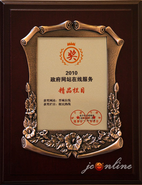 近日,在我省太原召開的2010年政府網(wǎng)站在線服務(wù)、政民精品欄目建設(shè)經(jīng)驗交流大會上,經(jīng)在線測試、專家評議、網(wǎng)民評估,我市政府門戶網(wǎng)站“晉城在線”的“便民熱線”欄目被評為在線服務(wù)精品欄目,喜獲“2010政府網(wǎng)站在線服務(wù)精品欄目獎”。